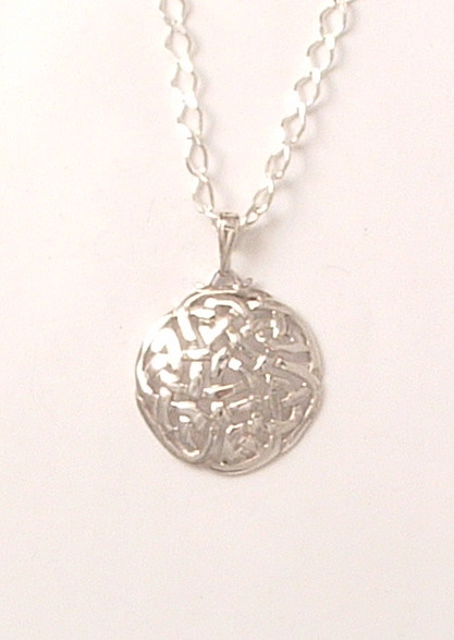 Round Interlacing The eternal knot, symbolic of the continuity of life, weaving in and out, back and forth, finding new direction, also finding itself. Left......Width 1.5", chain 18 ", Price € 88 Right.....Width 1", chain 18", Price €48