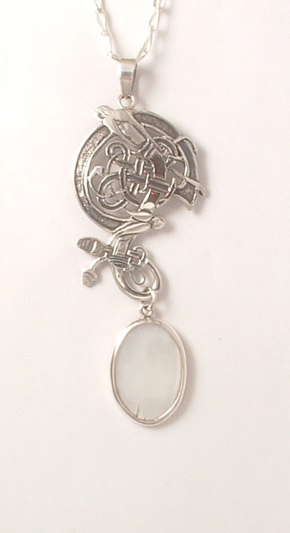 Two Birds from The Book of Kells Symbolic of migration and freedom, This piece can be set with a variety of stones Price € 96, Chain 18 ", size 2.5 ". |