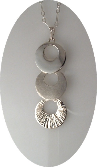 3 Circles necklace Three circles, three different finishes, polished, satin and hammered