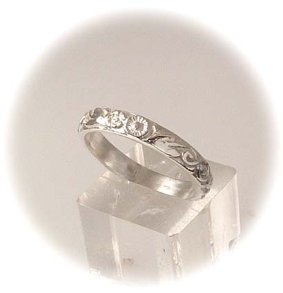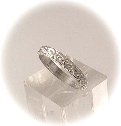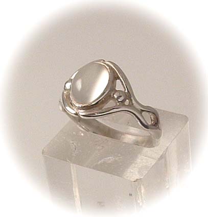 Left.....Plain loops, set with 6mm Moonstone. Price, €35 Right.....Filed ring. Price, €22 |