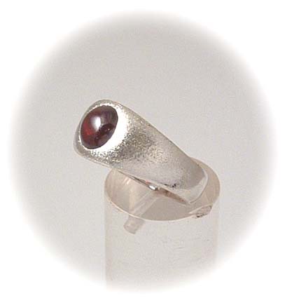 Gypsy ring, set with garnet, and satin finished. Price € 54 |
